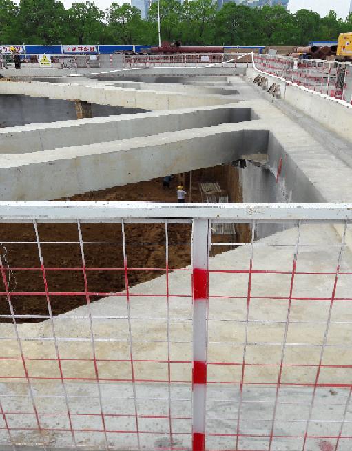 臺,標準段主體結構為地下二層單柱雙跨鋼筋混凝土框架結構,采用明挖順做法施工;車站總長度193m,標準段寬度為20.7m,標準段基坑深度平均16.4m。