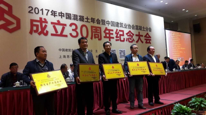 2017年10月25日公司董事長倪總和總經(jīng)理??倕⒓恿嗽谖靼才e辦的《中國混凝土年會暨中國建筑業(yè)協(xié)會分會成立30周年紀(jì)念大會》,會上參與討論關(guān)于混凝土行業(yè)綠色發(fā)展以及企業(yè)轉(zhuǎn)型升級,并榮獲《綠色生產(chǎn)示范企業(yè)》稱號。